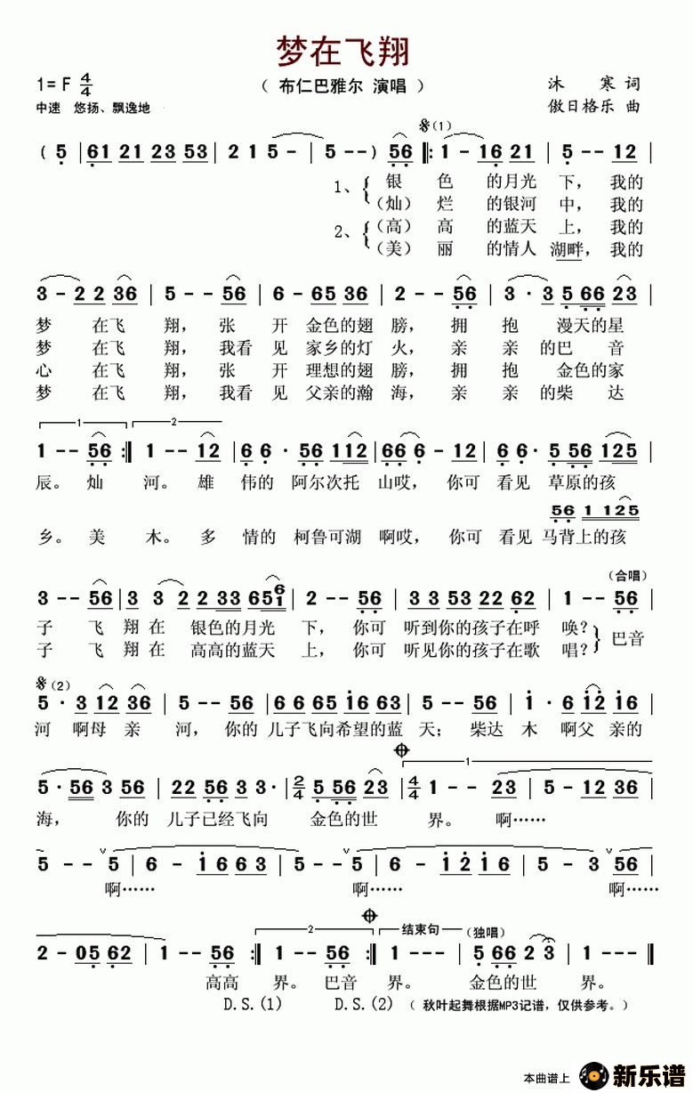 《梦在飞翔》最新曲谱 布仁巴雅尔
