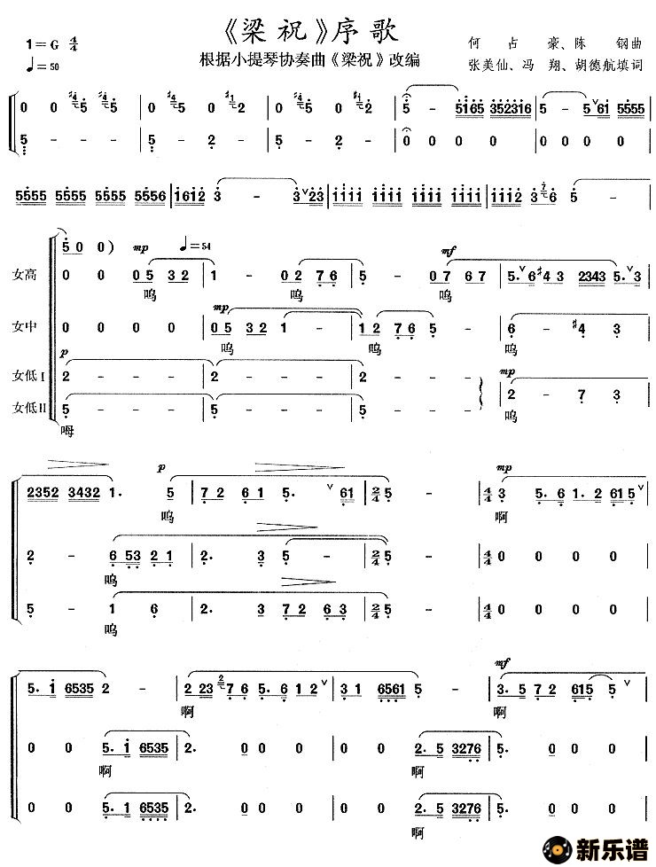演唱的梁祝序歌歌词,梁祝序歌最新曲谱.