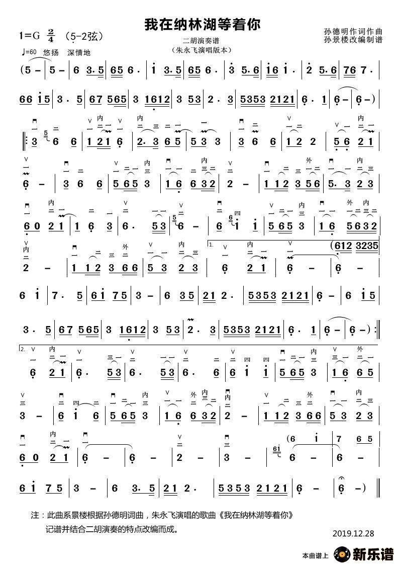 《我在纳林湖等着你》最新曲谱 景楼演奏