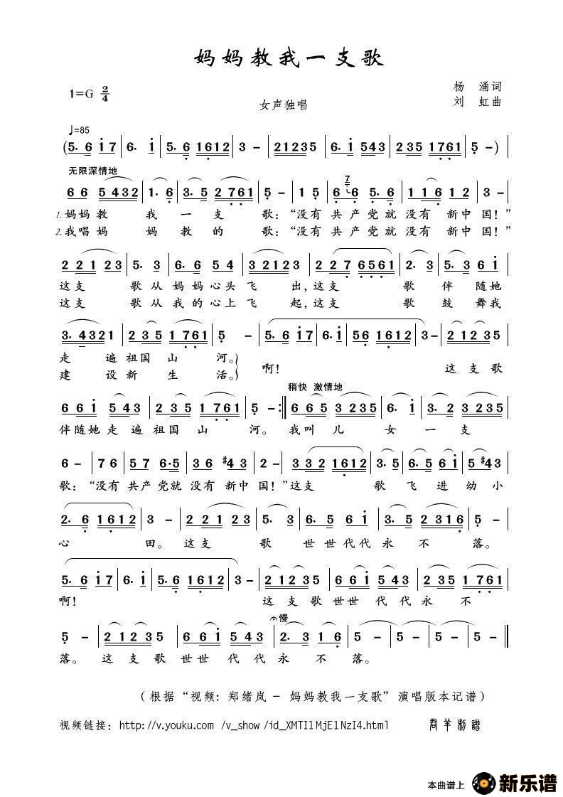 郑绪岚演唱的妈妈教我一支歌歌词,妈妈教我一支歌最新曲谱.