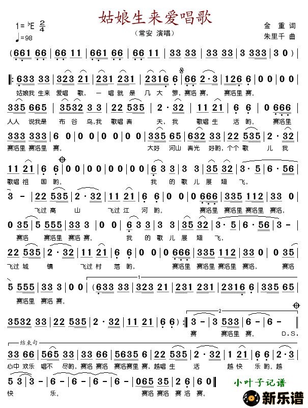 常安演唱的姑娘生来爱唱歌歌词,姑娘生来爱唱歌最新曲谱.