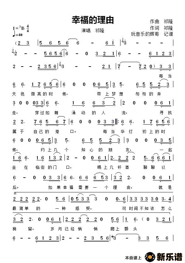 祁隆演唱的幸福的理由歌词,幸福的理由最新曲谱.