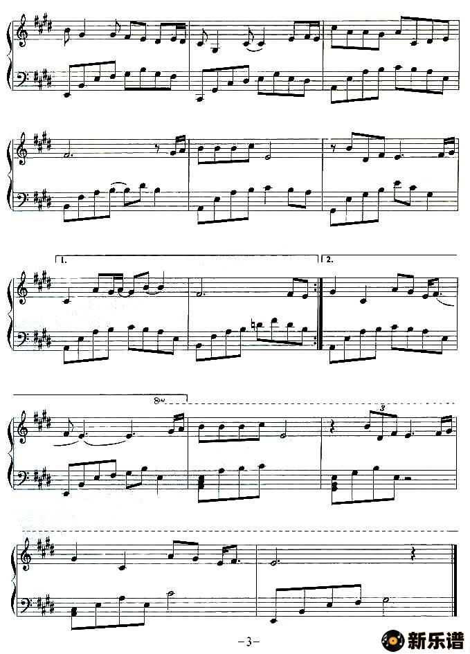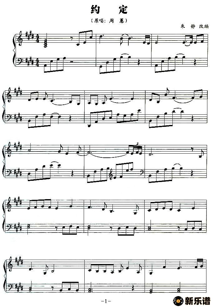 版本一:朱静改编,选自《流行歌曲改编的钢琴曲集》