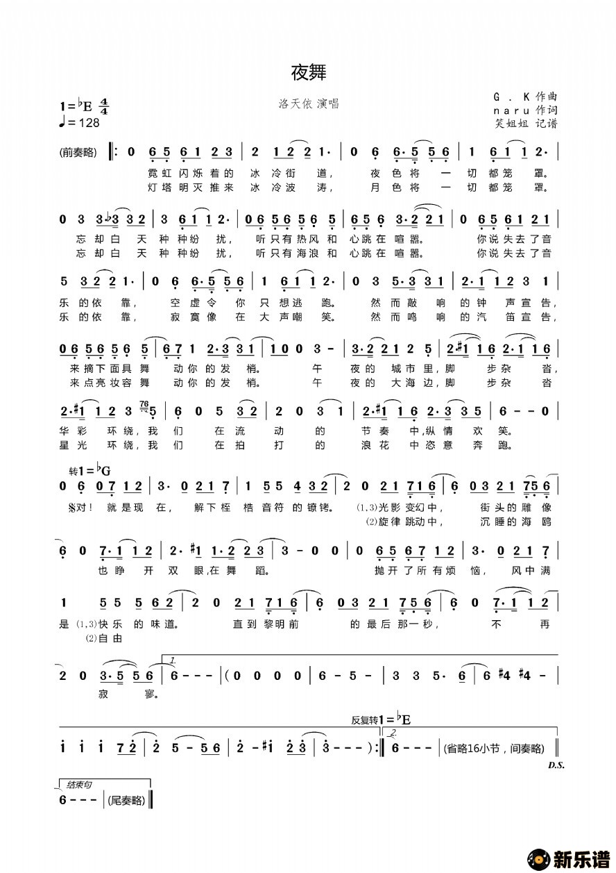 洛天依演唱的夜舞歌词,夜舞最新曲谱.
