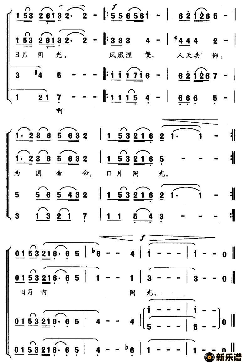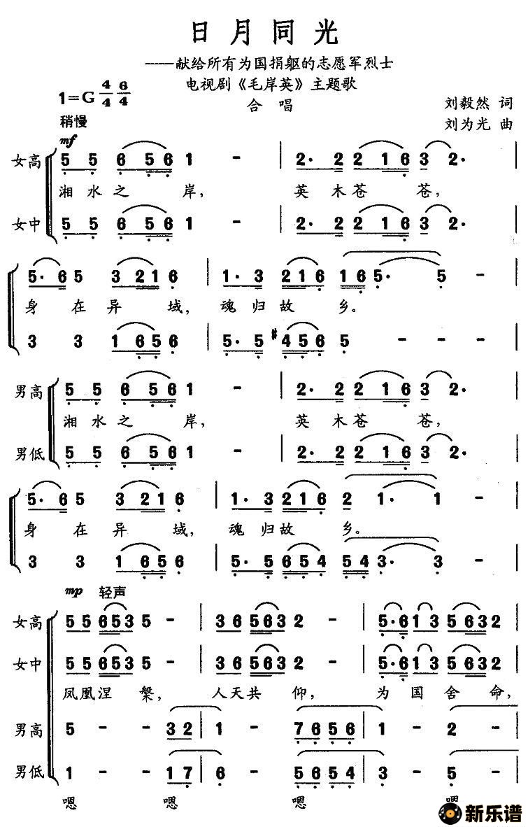 > 日月同光(电视剧《毛岸英》主题歌)最新曲谱
