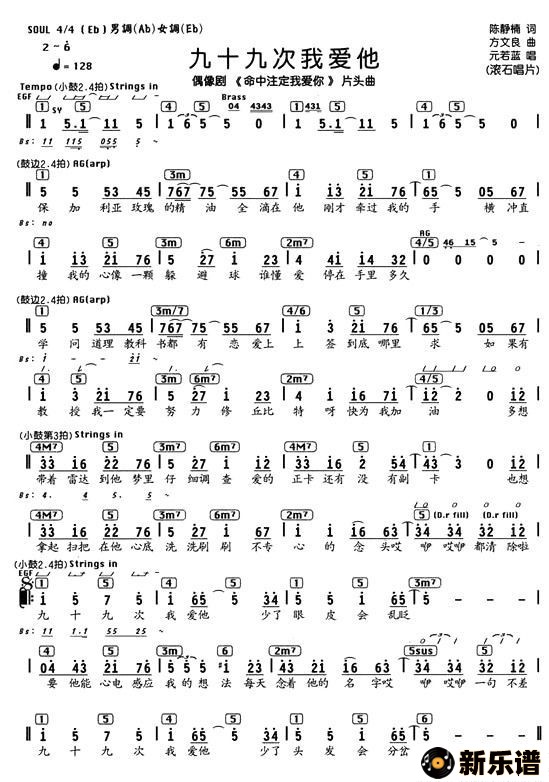 九十九次我爱你(电视剧《命中注定我爱你》片头曲、编配乐谱)最新曲谱