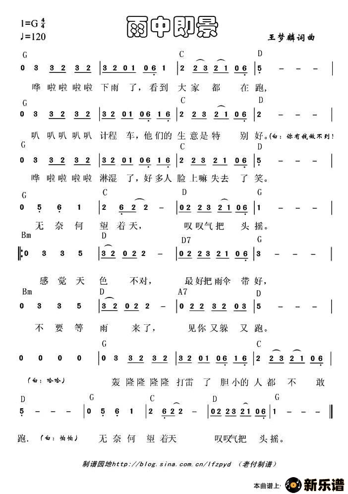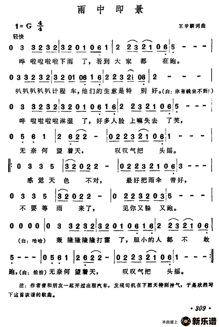 刘文正演唱的雨中即景歌词,雨中即景最新曲谱.