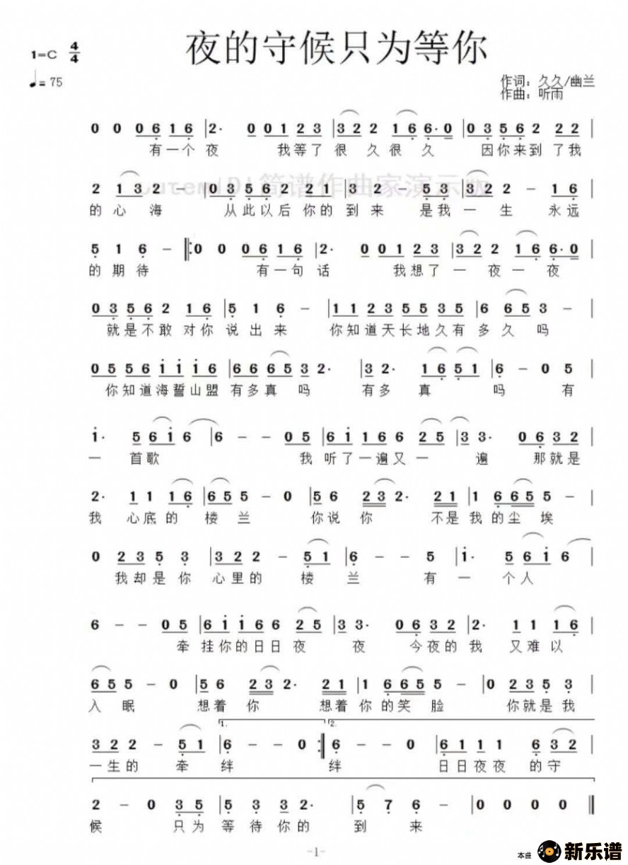 《夜的守候只为等你》最新曲谱 沁心小筑