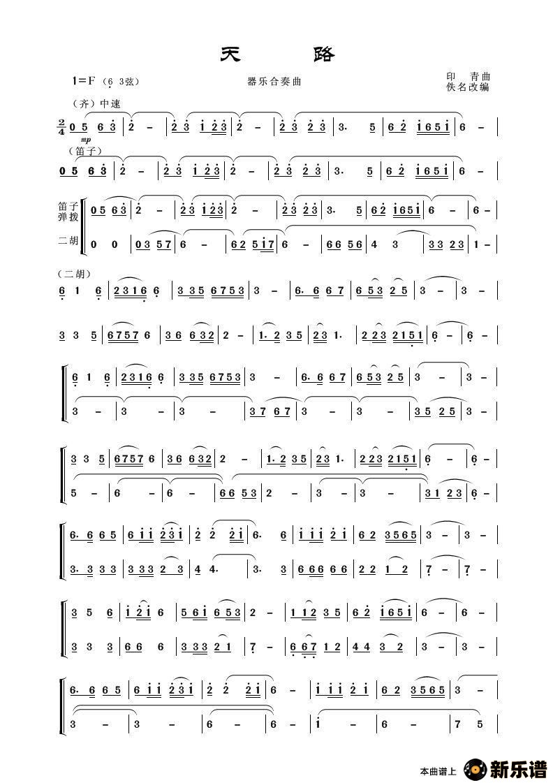 > 天路最新曲谱