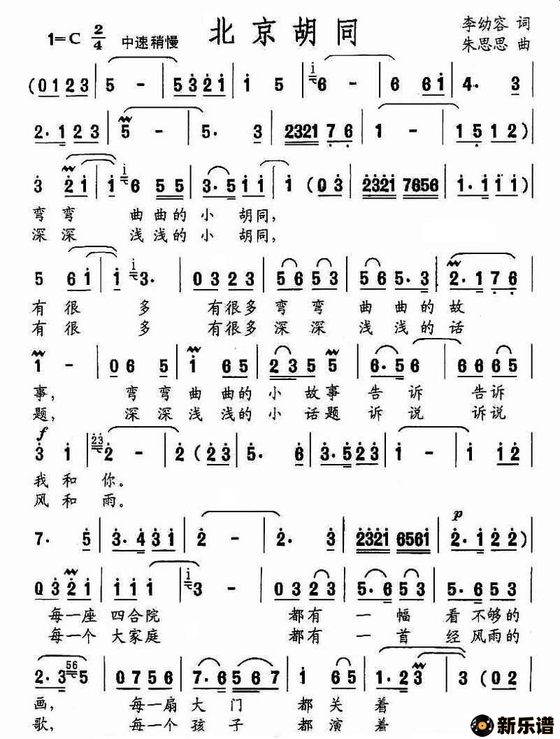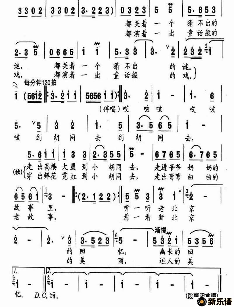 段丽阳演唱的北京胡同歌词,北京胡同最新曲谱.