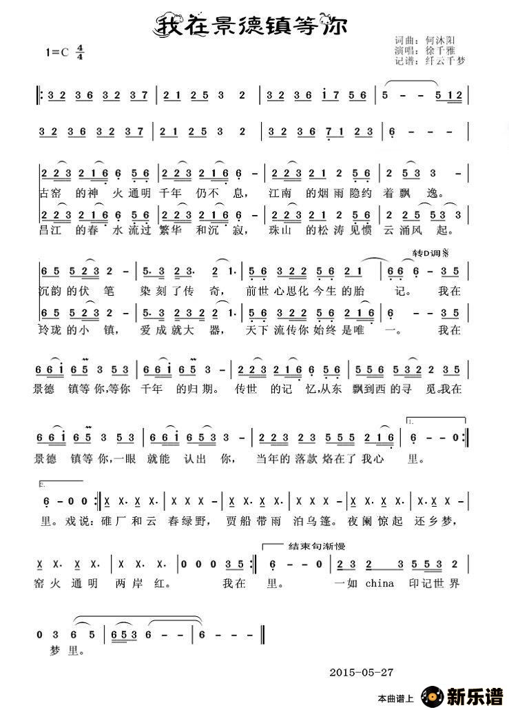 徐千雅演唱的我在景德镇等你歌词,我在景德镇等你最新曲谱.