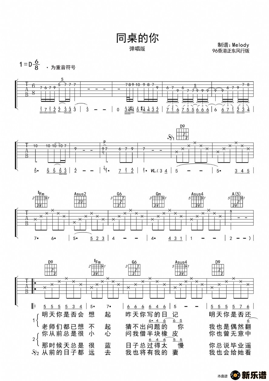 老狼演唱的同桌的你歌词,同桌的你最新曲谱.