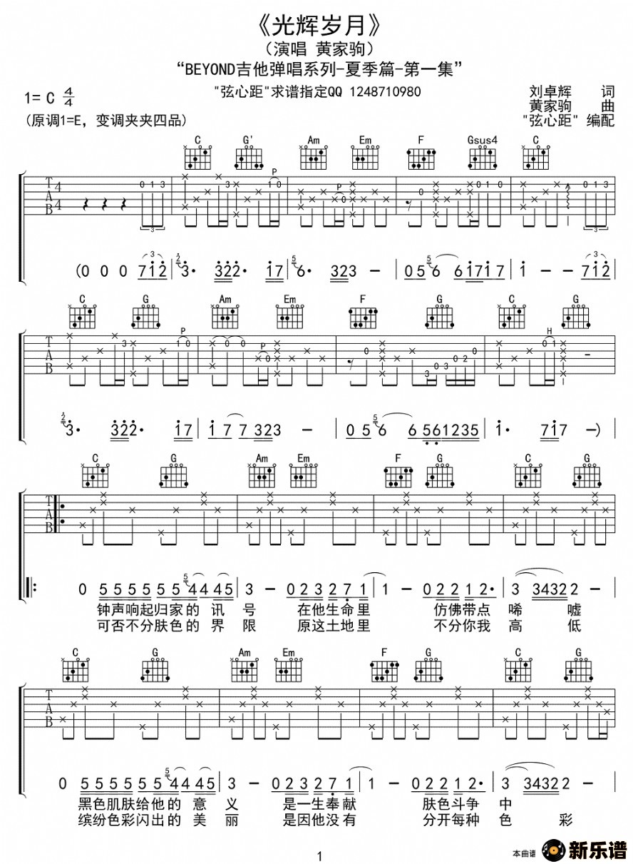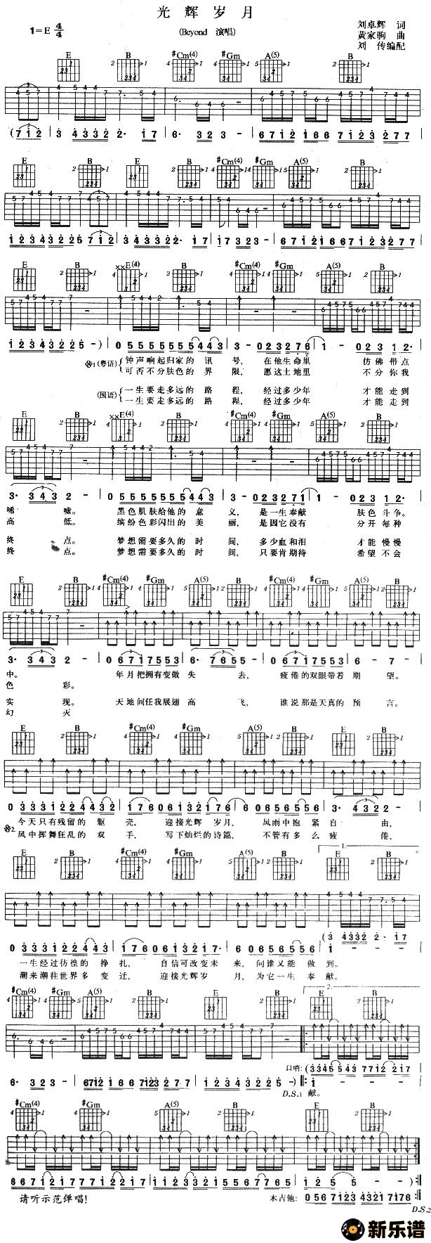 Beyond演唱的光辉岁月歌词,光辉岁月最新曲谱.