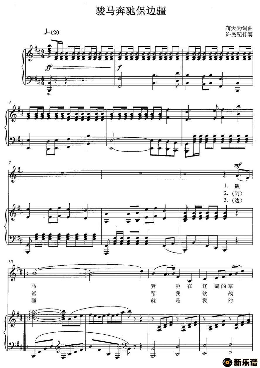 《骏马奔驰保边疆》最新曲谱 蒋大为