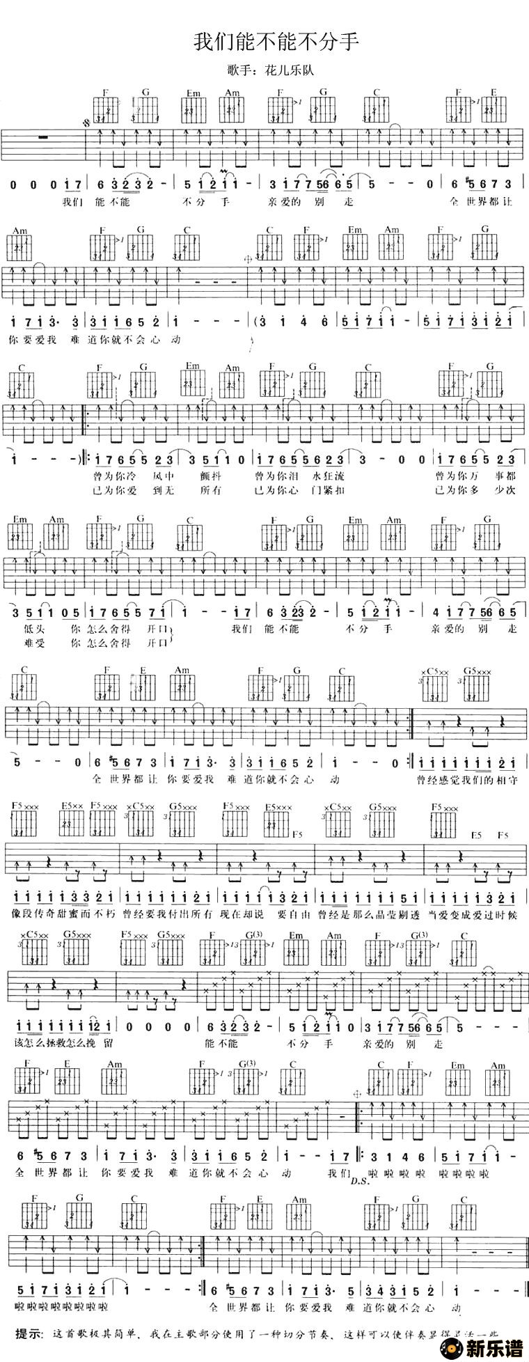 《我们能不能不分手》最新曲谱 花儿乐队