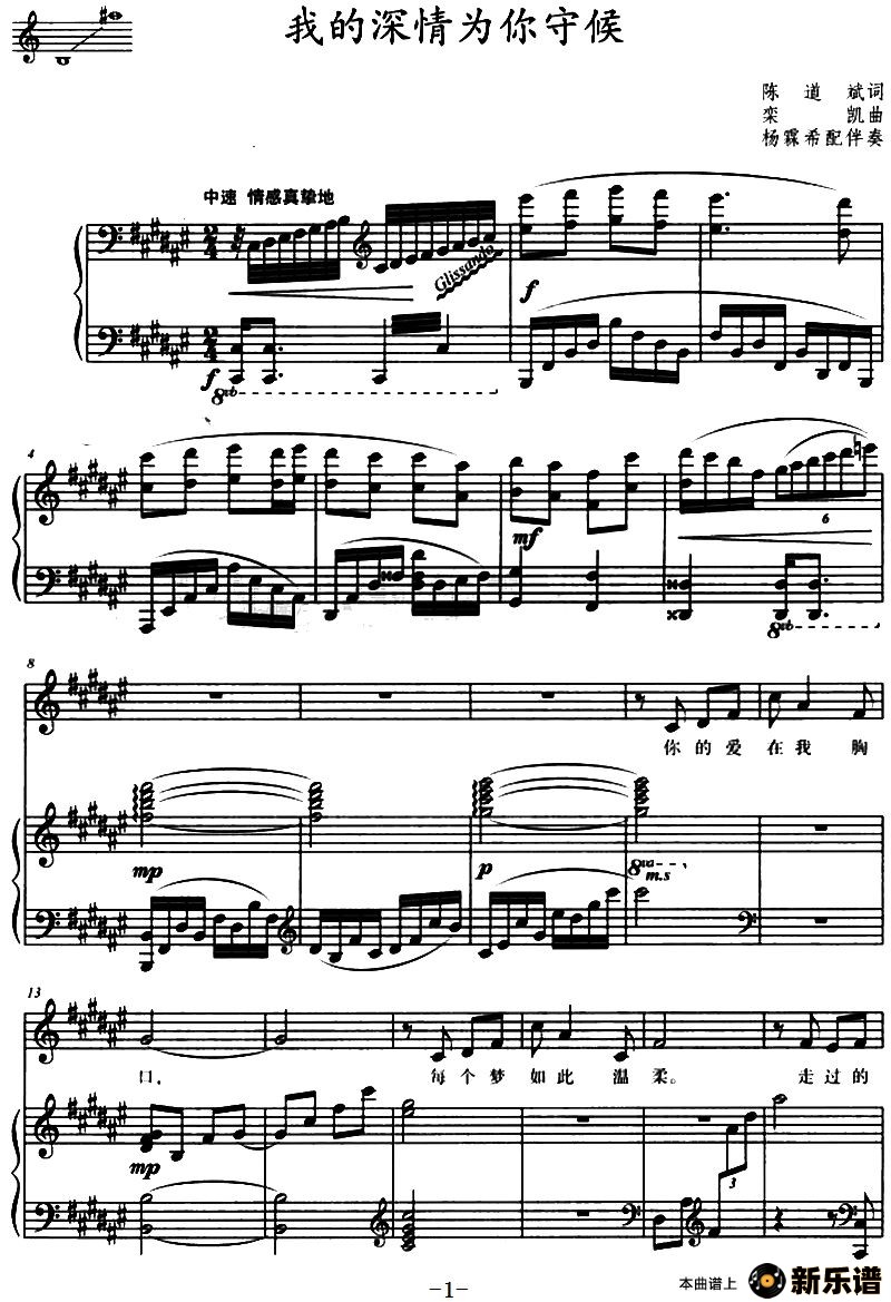 演唱的我的深情为你守候歌词,我的深情为你守候最新曲谱.