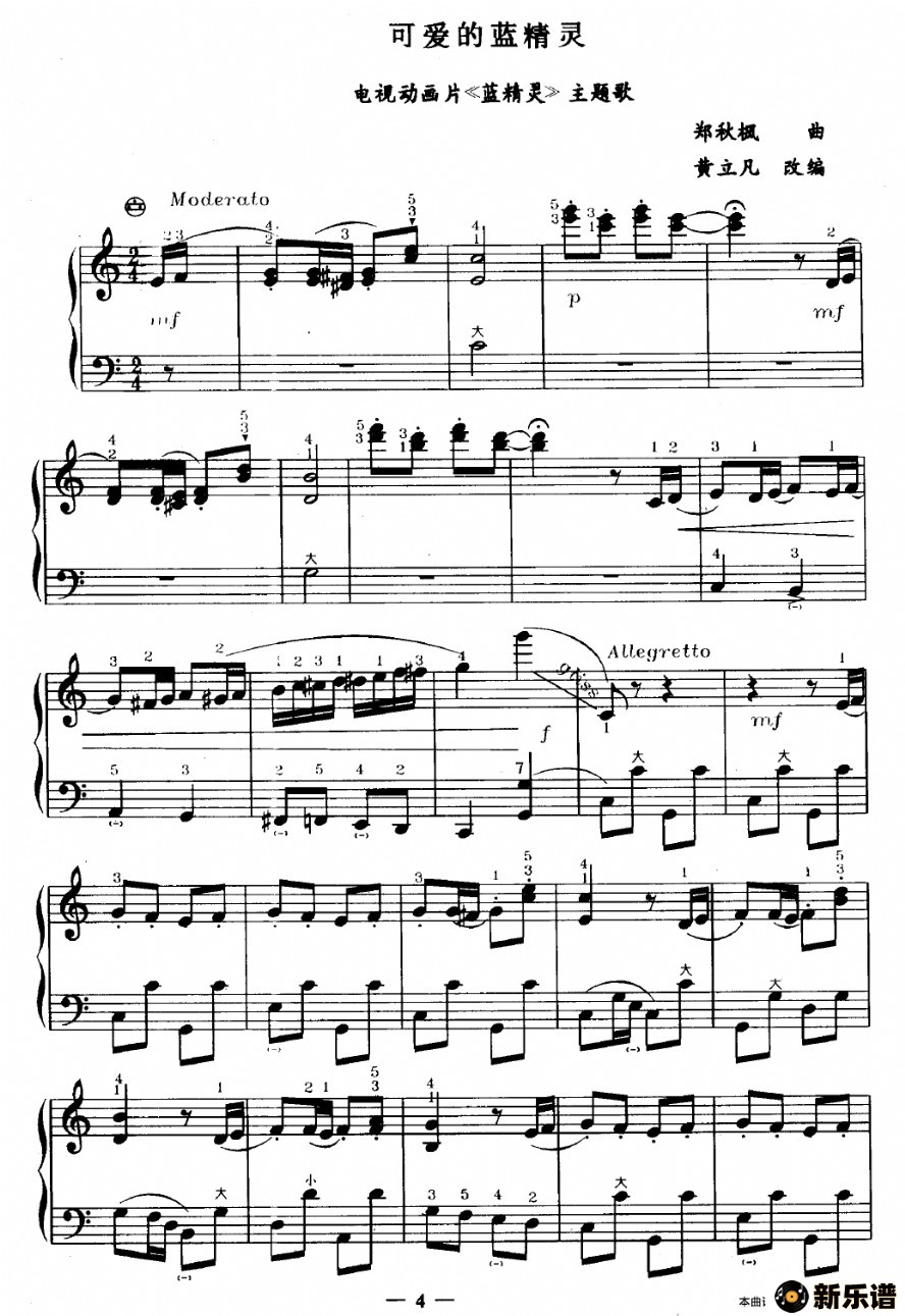 演唱的可爱的蓝精灵歌词,可爱的蓝精灵最新曲谱.