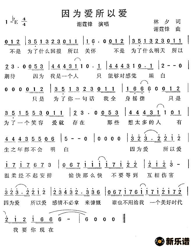 谢霆锋演唱的因为爱所以爱歌词,因为爱所以爱最新曲谱.