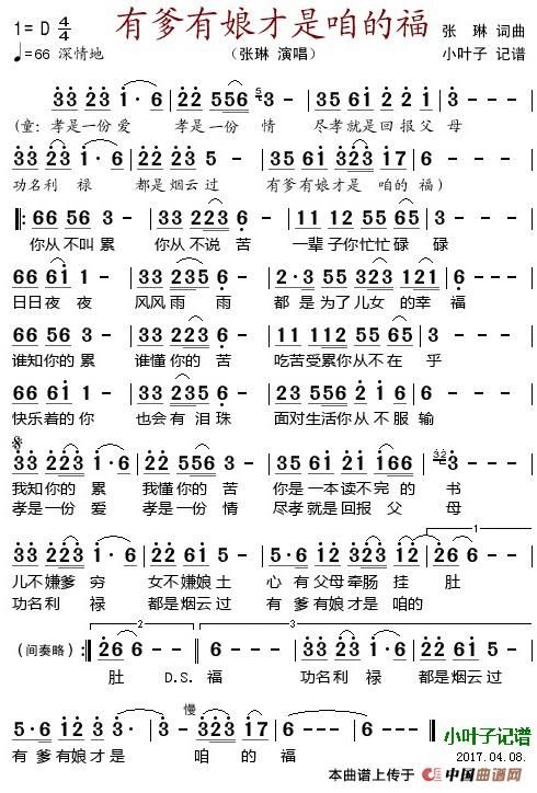 《有爹有娘才是咱的福》最新曲谱 张琳