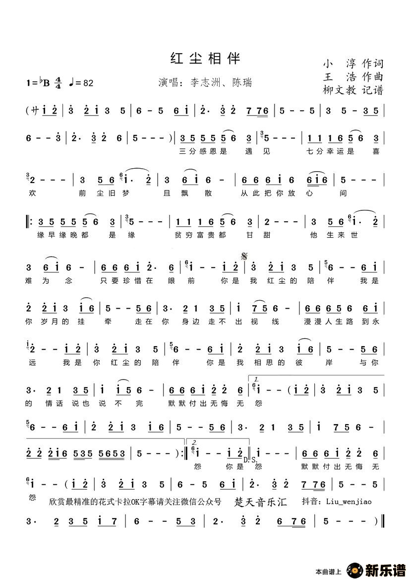 《红尘相伴》最新曲谱 李志洲、陈瑞