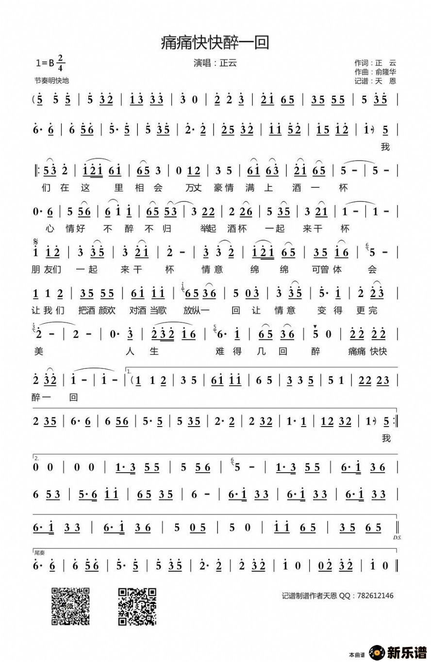 《痛痛快快醉一回》最新曲谱 正云-天恩制谱