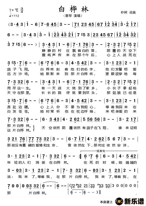 蔡琴演唱的白桦林歌词,白桦林最新曲谱.