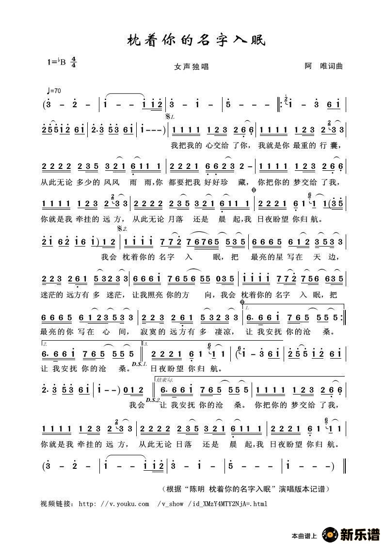 《枕着你的名字入眠》最新曲谱 陈明-君羊制谱