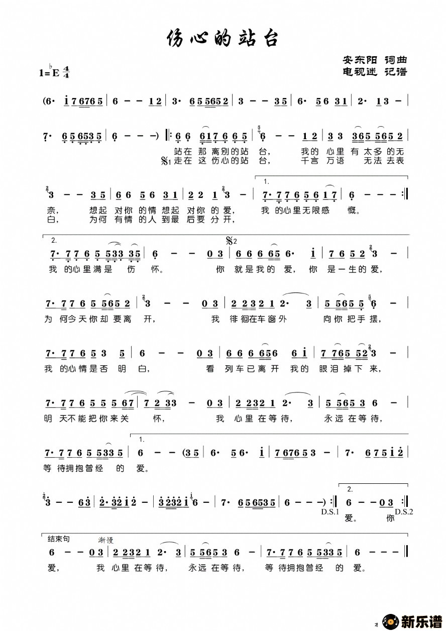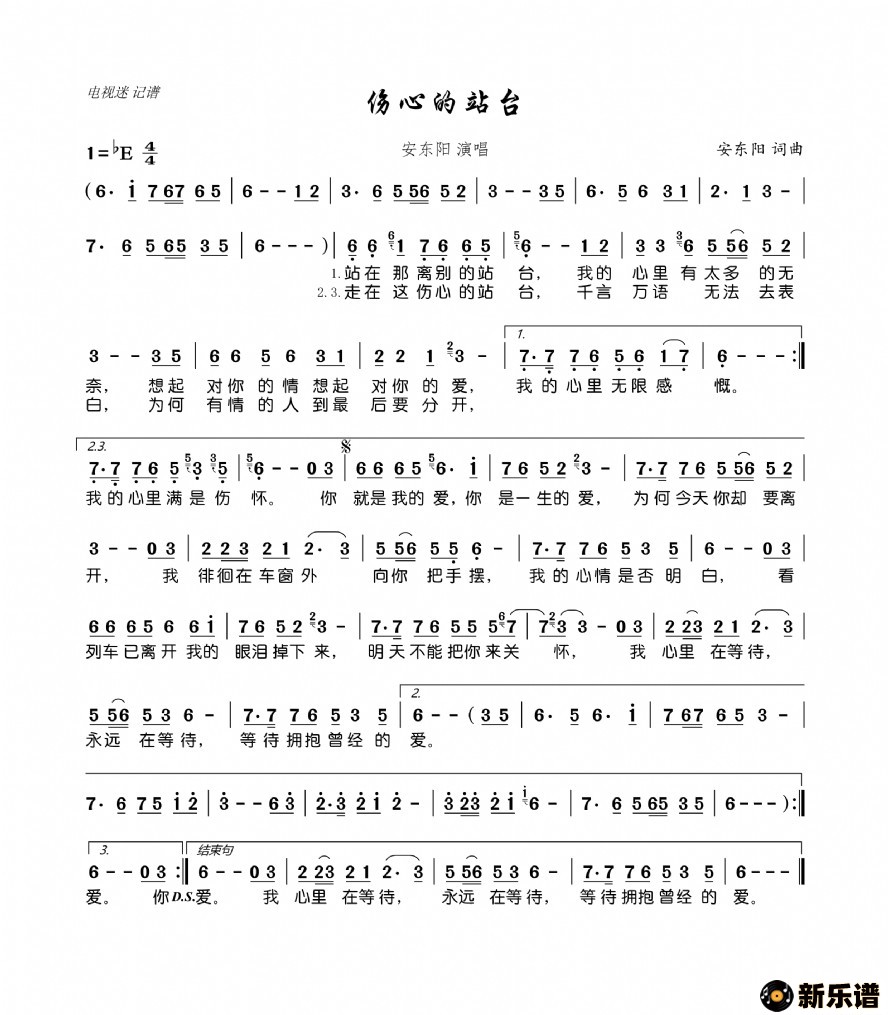 安东阳演唱的伤心的站台歌词,伤心的站台最新曲谱.