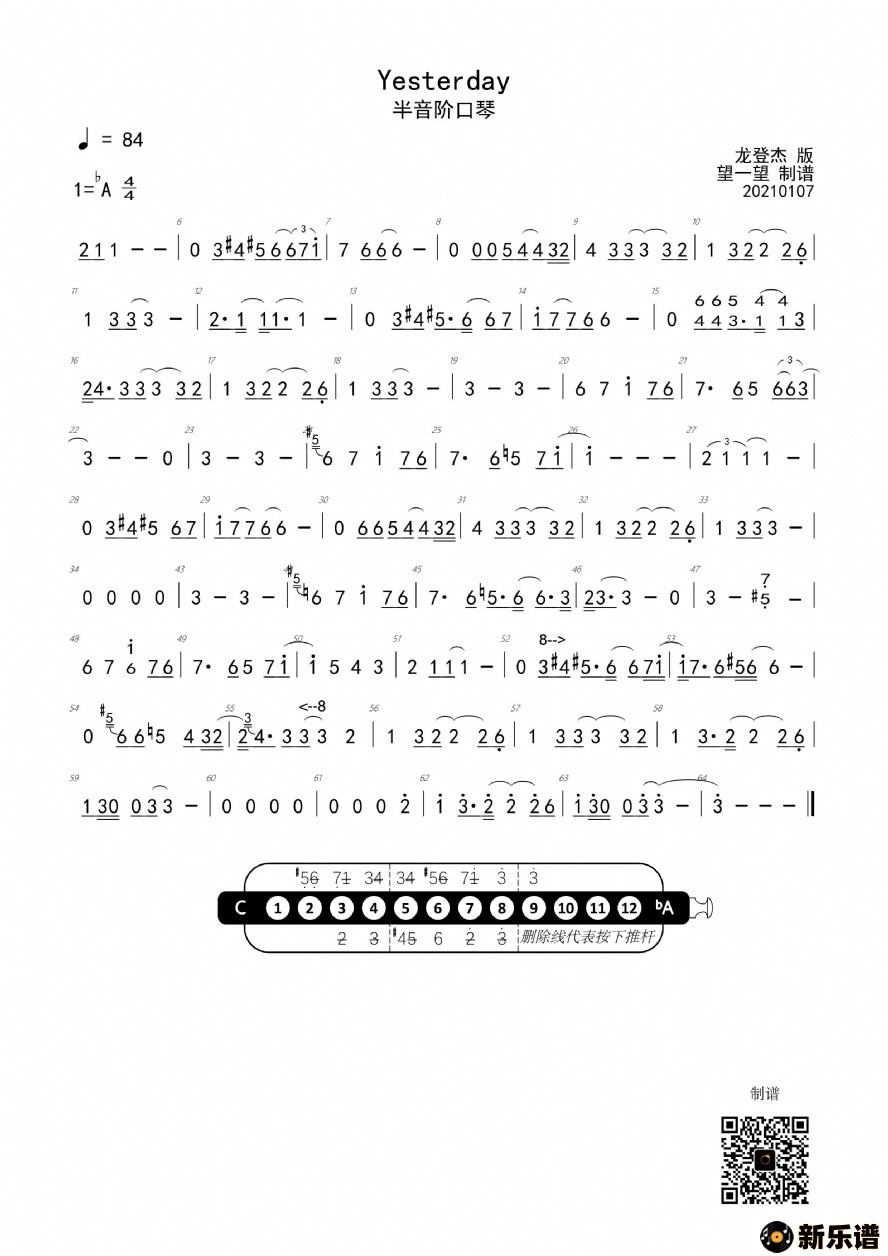 龙登杰演唱的yesterday歌词,yesterday最新曲谱.