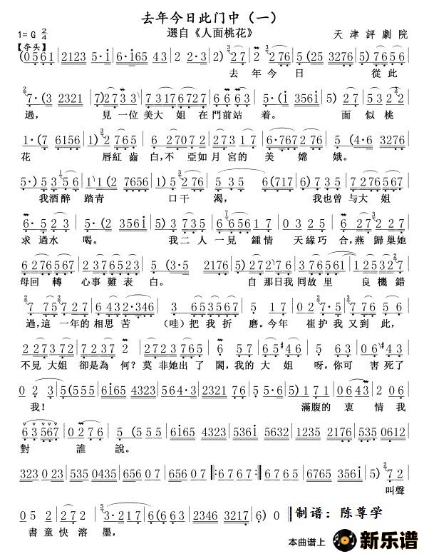 演唱的去年今日此门中(一)歌词,去年今日此门中(一)最新曲谱.