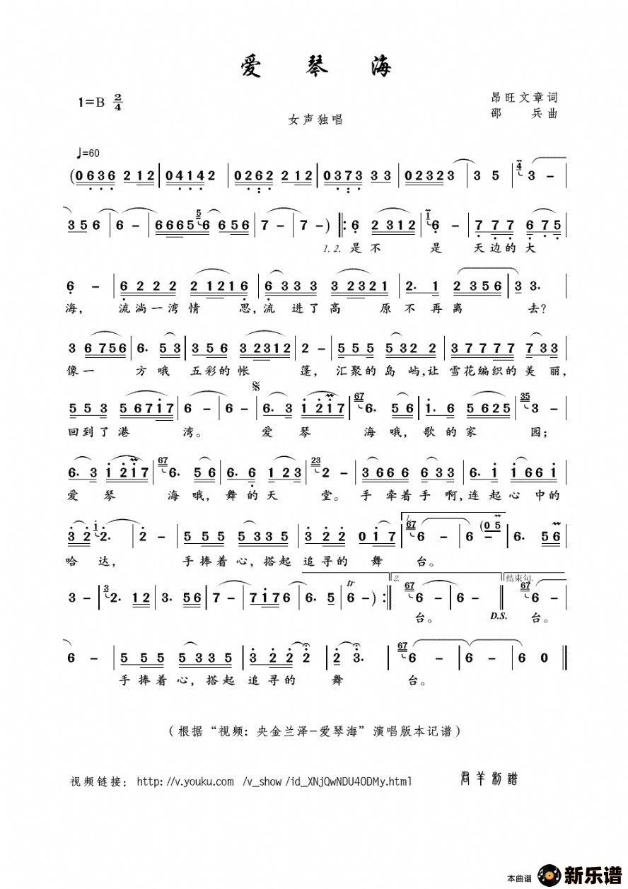 《爱琴海》最新曲谱 央金兰泽-君羊制谱