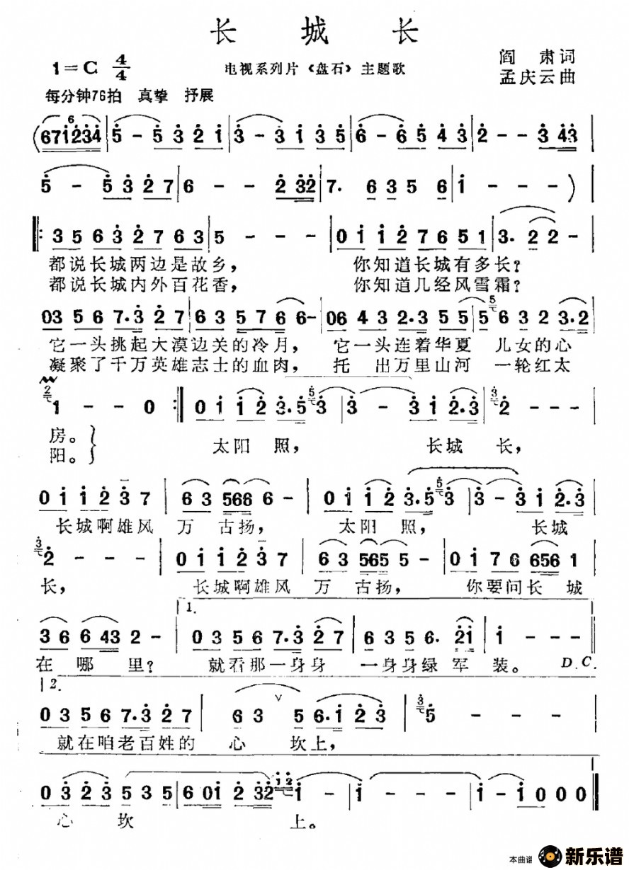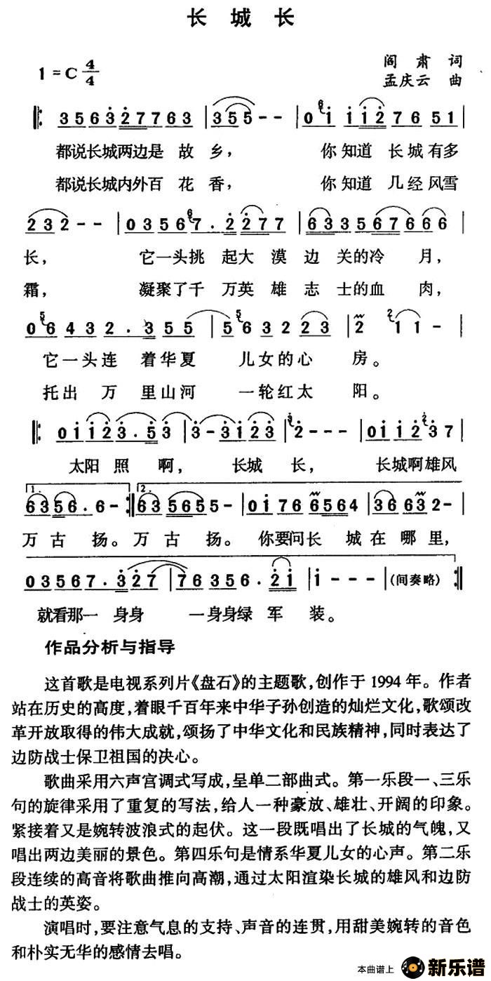 董文华演唱的长城长歌词,长城长最新曲谱.