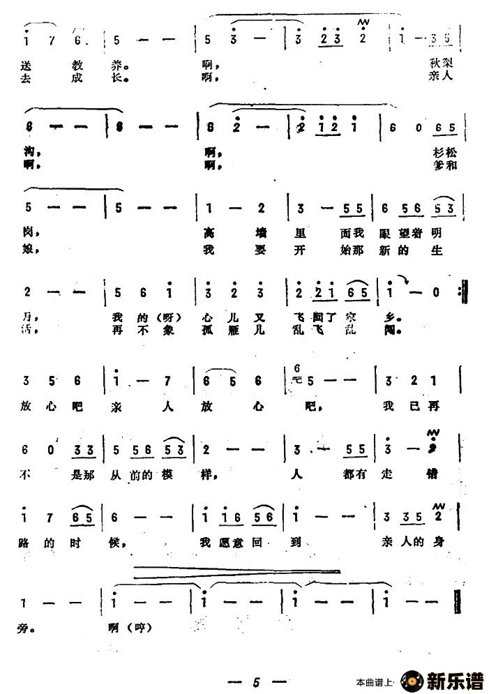 心声(电影《少年犯》主题歌)(张良 王静珠词 李春生曲)最新曲谱