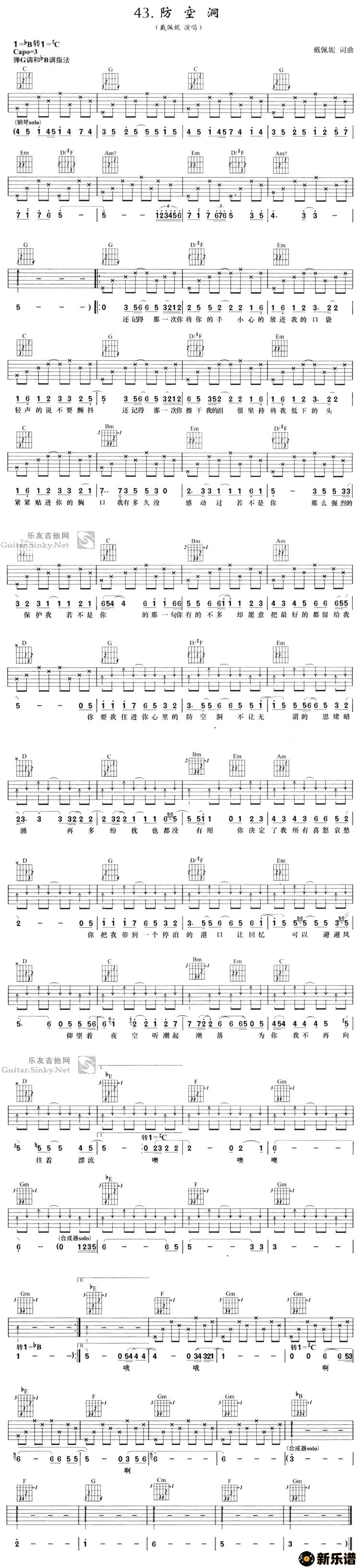 《防空洞》最新曲谱 戴佩妮