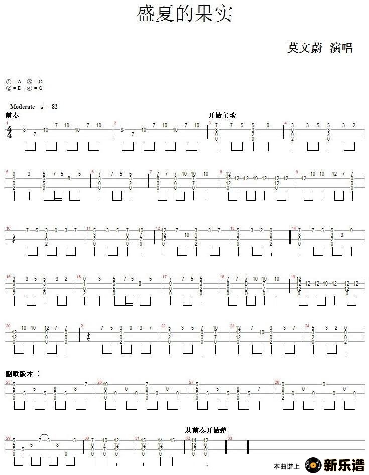 莫文蔚演唱的盛夏的果实歌词,盛夏的果实最新曲谱.