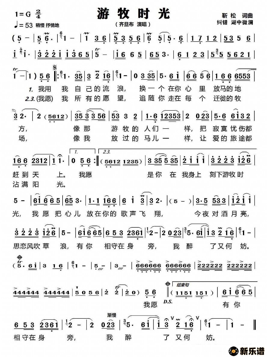 演唱的游牧时光歌词,游牧时光最新曲谱.