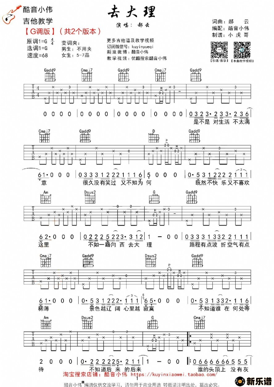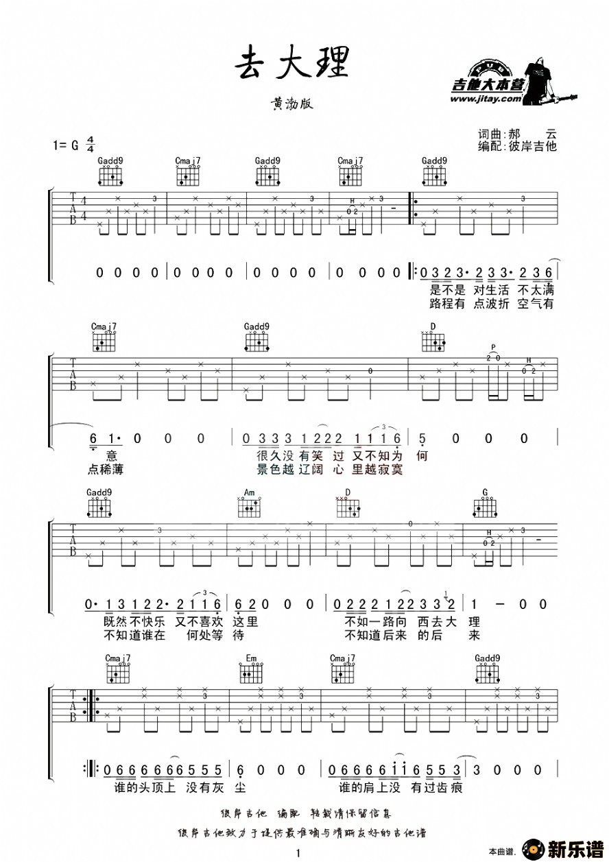 郝云《去大理》简化版超清谱 老歌大叔吉他教室出品吉他谱