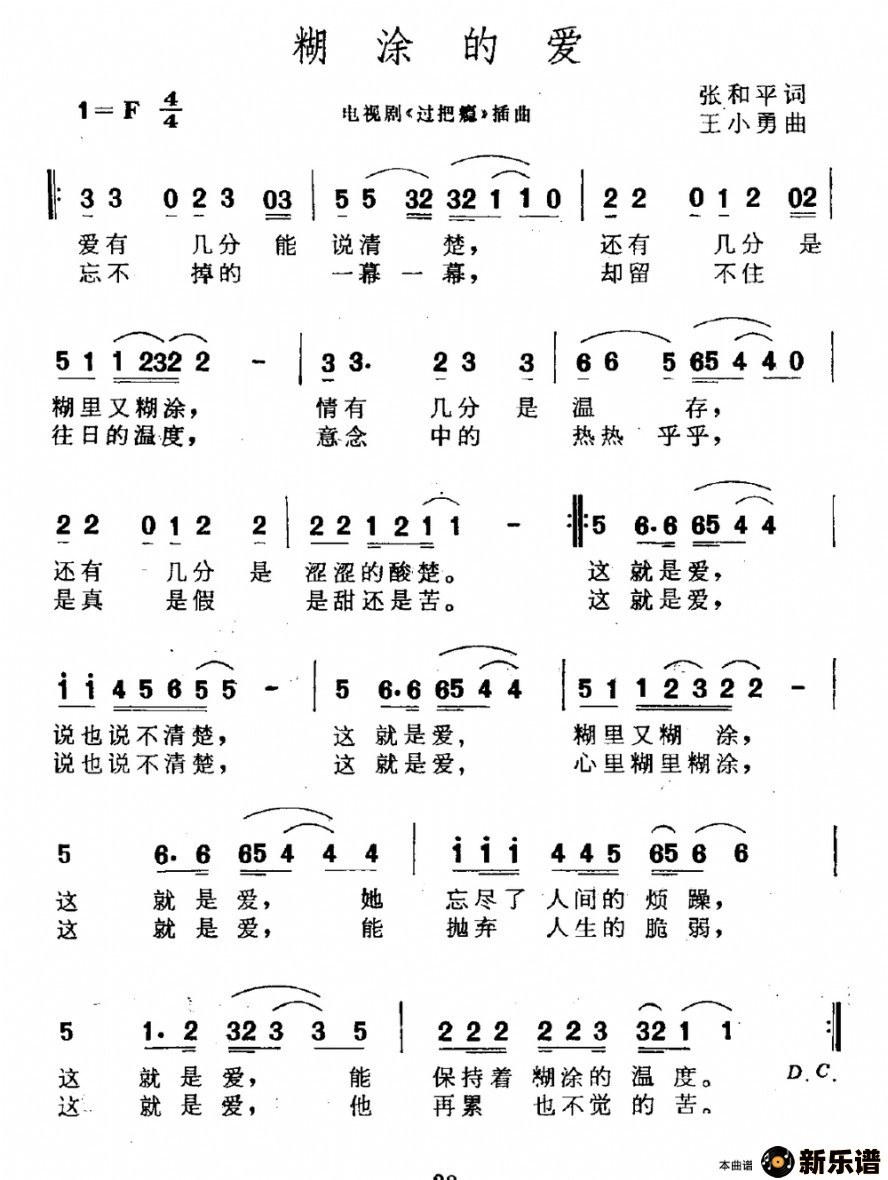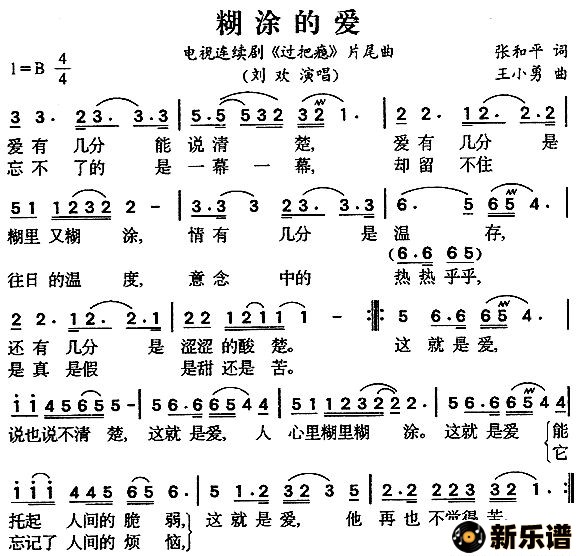 > 糊涂的爱(电视剧《过把瘾》片尾曲)最新曲谱