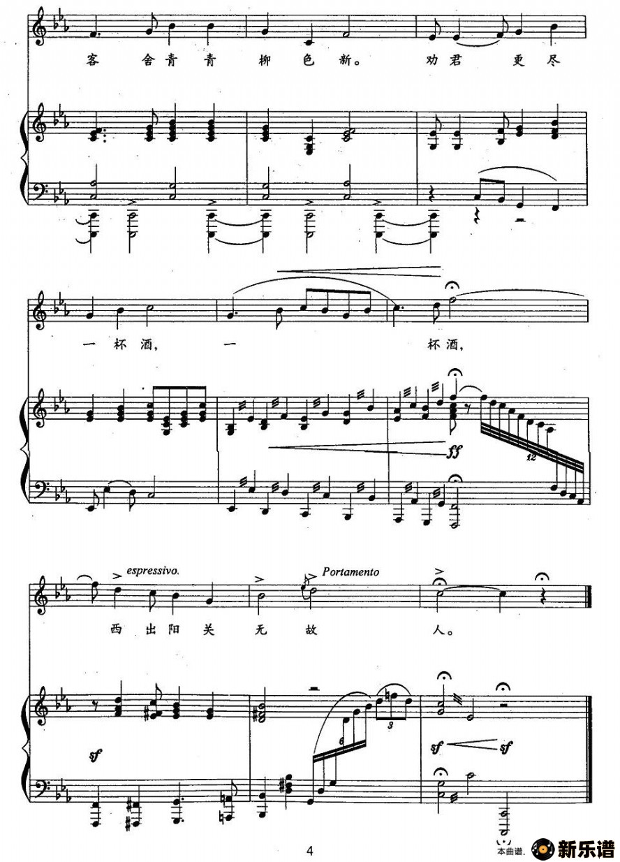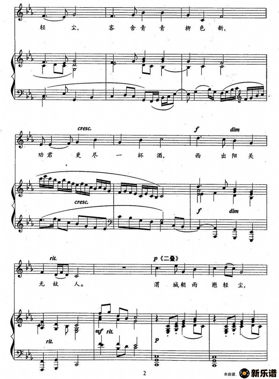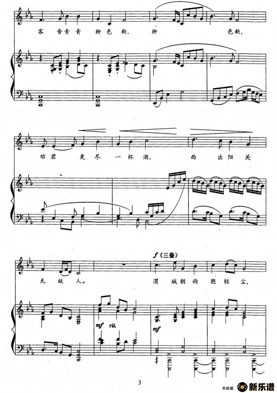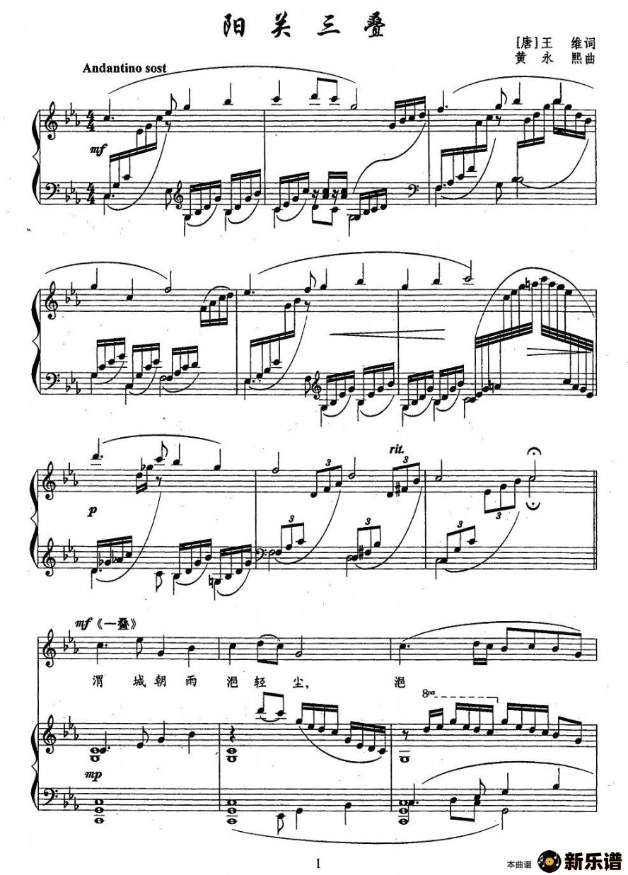 演唱的阳关三叠歌词,阳关三叠最新曲谱.