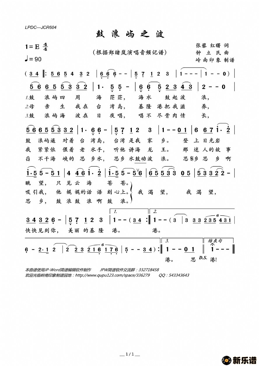 《鼓浪屿之波》最新曲谱 郑绪岚-岭南印象制谱