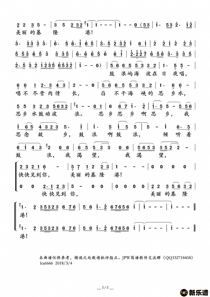 《鼓浪屿之波京歌版》最新曲谱 胡文阁 郑绪岚