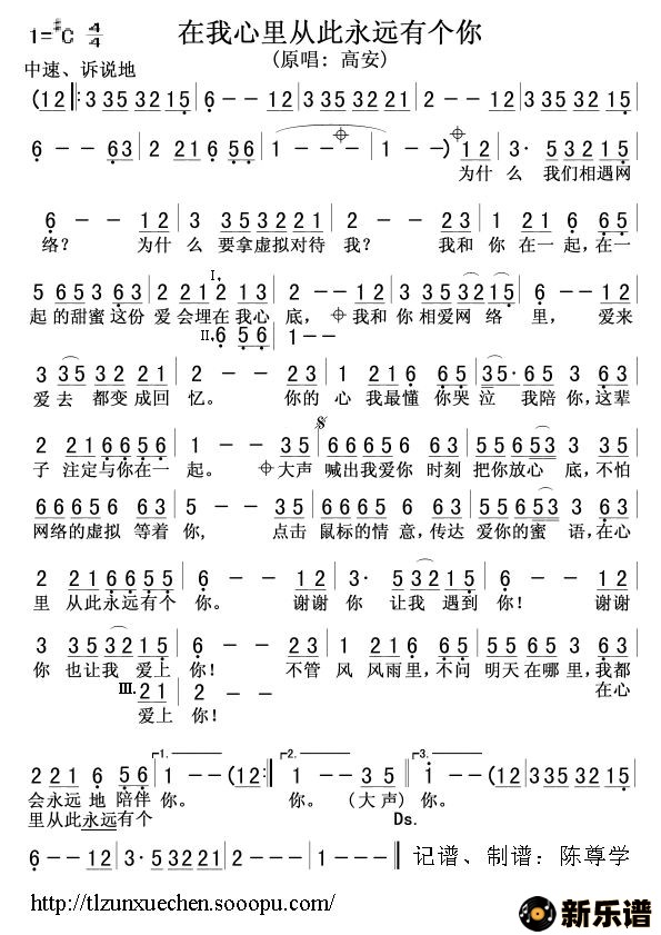 高安演唱的在我心里从此永远有个你歌词,在我心里从此永远有个你最新曲谱.