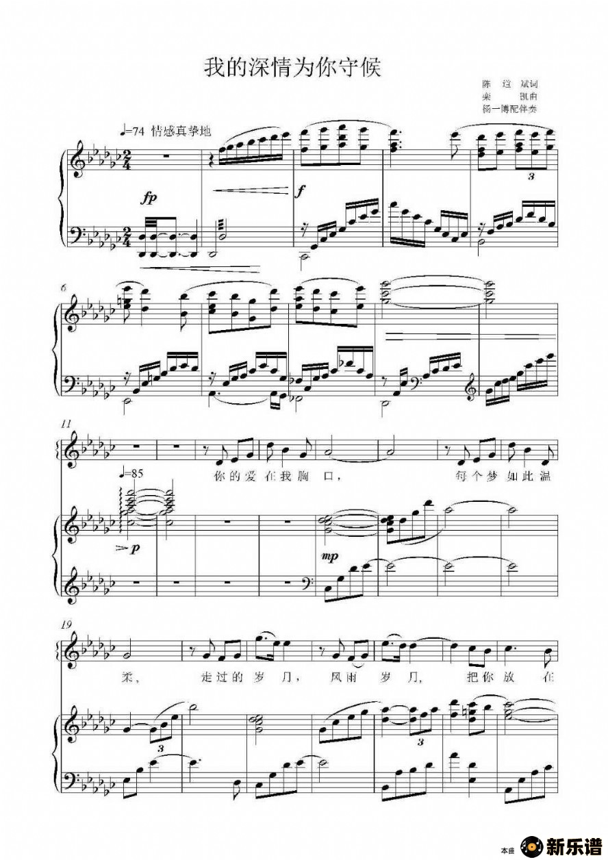 演唱的我的深情为你守候歌词,我的深情为你守候最新曲谱.