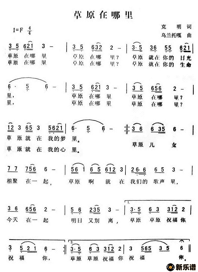 演唱的草原在哪里歌词,草原在哪里最新曲谱.