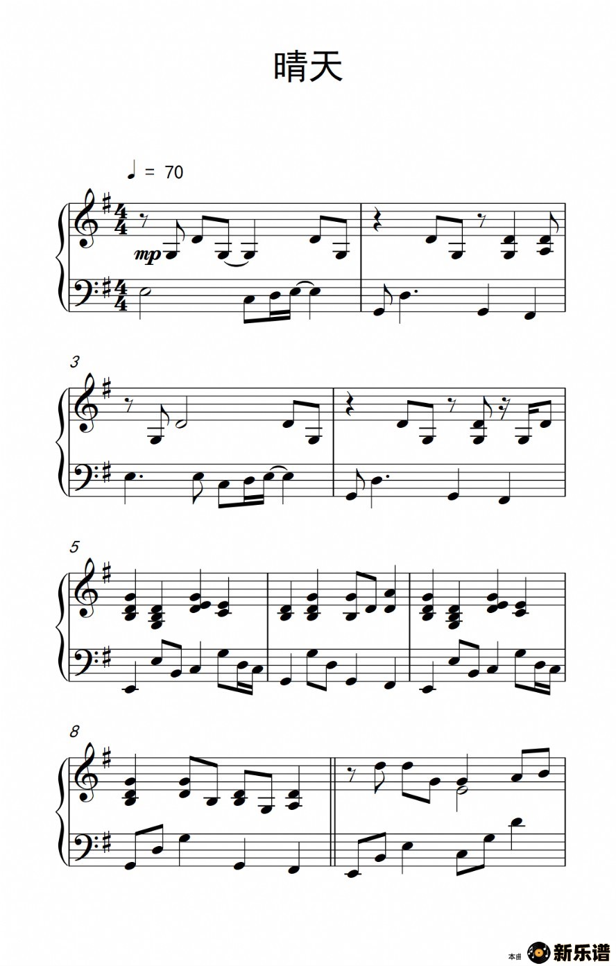 > 晴天最新曲谱