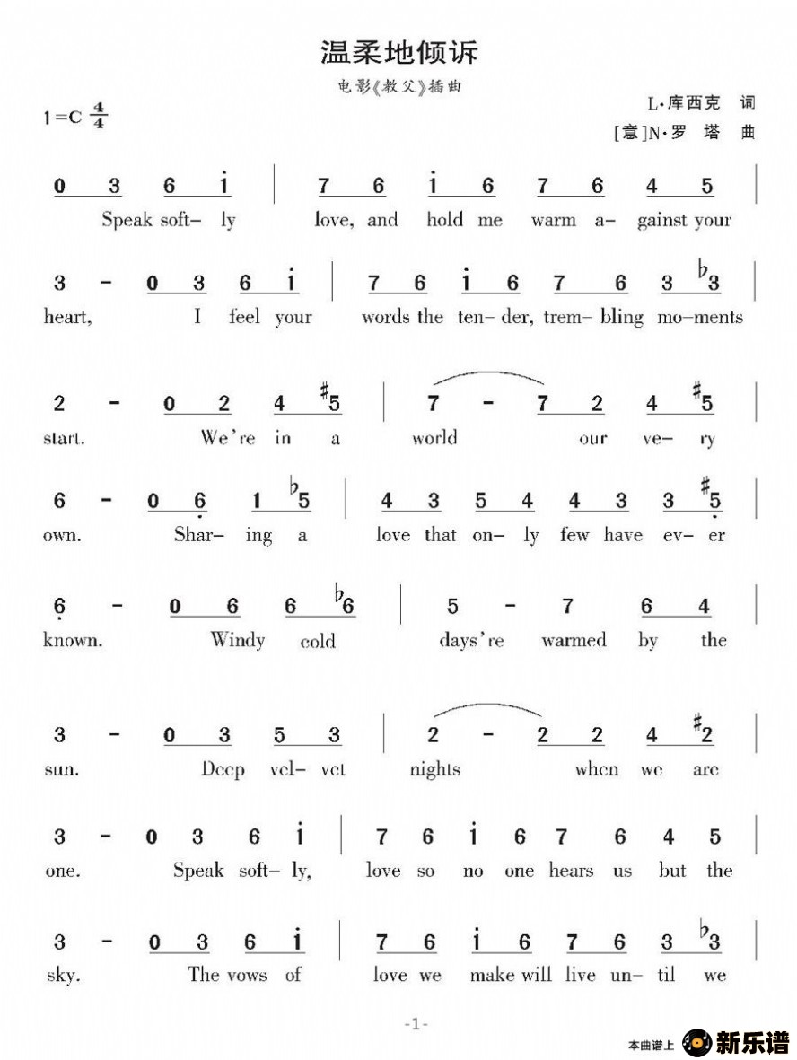 > 【美】温柔地倾诉(电影《教父》插曲)最新曲谱