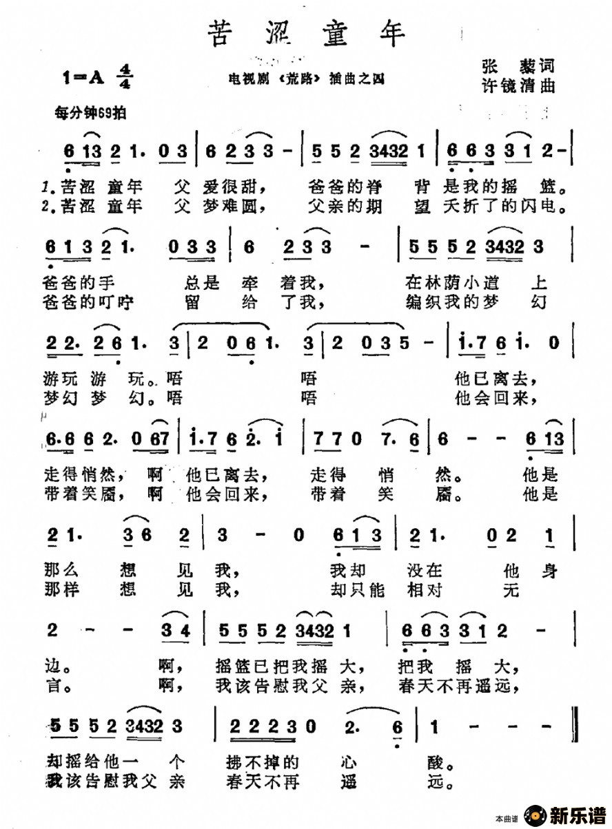 演唱的苦涩童年歌词,苦涩童年最新曲谱.