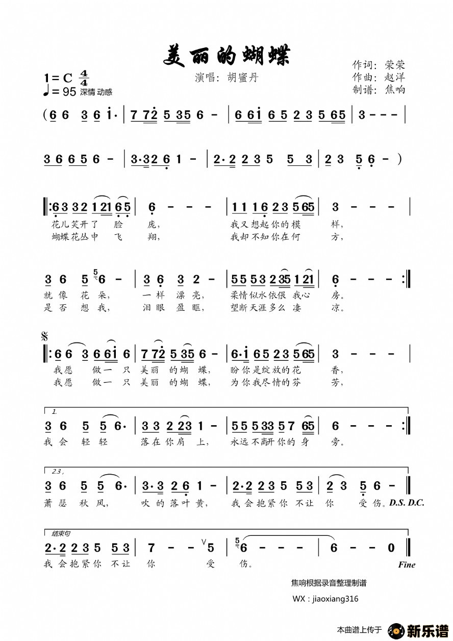《美丽的蝴蝶》最新曲谱 胡蜜丹