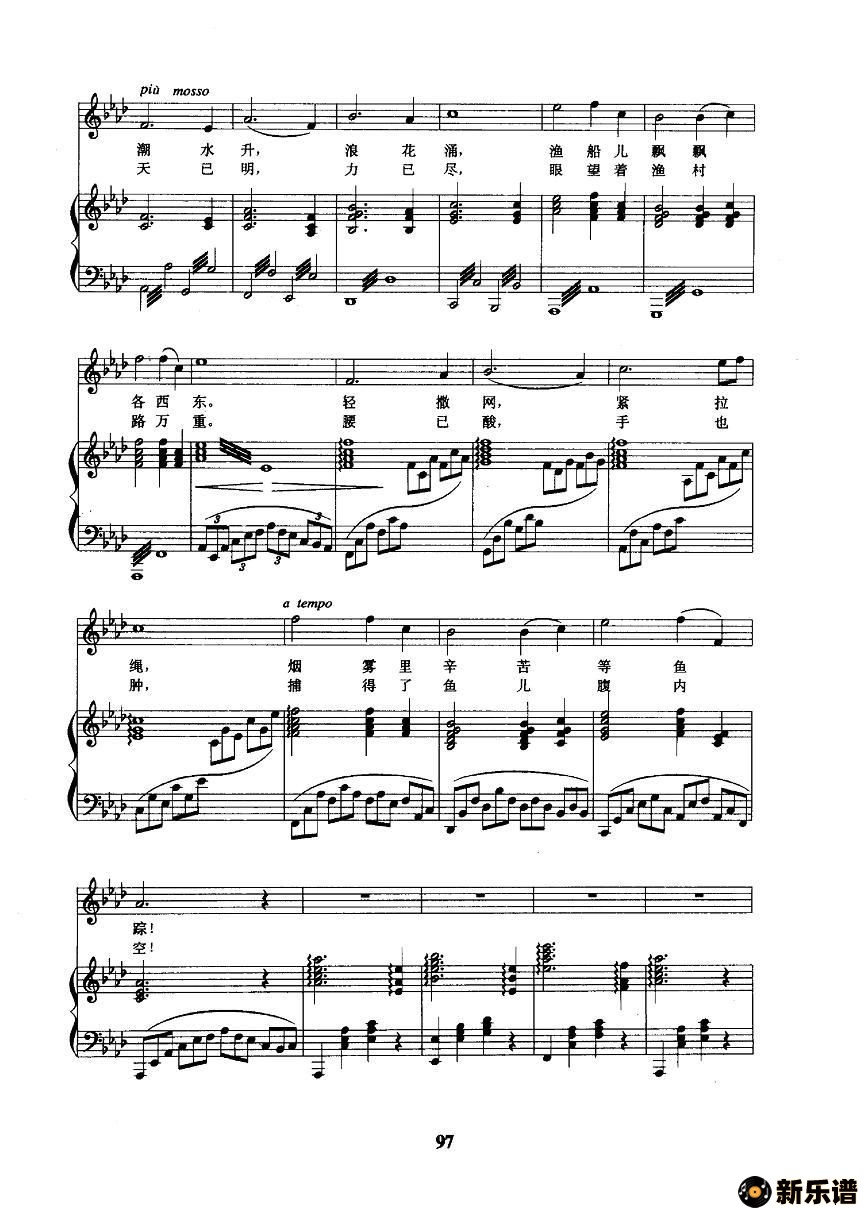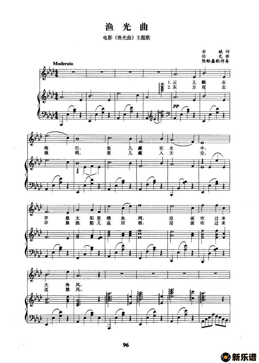 > 渔光曲(同名电影主题歌 、正谱)最新曲谱