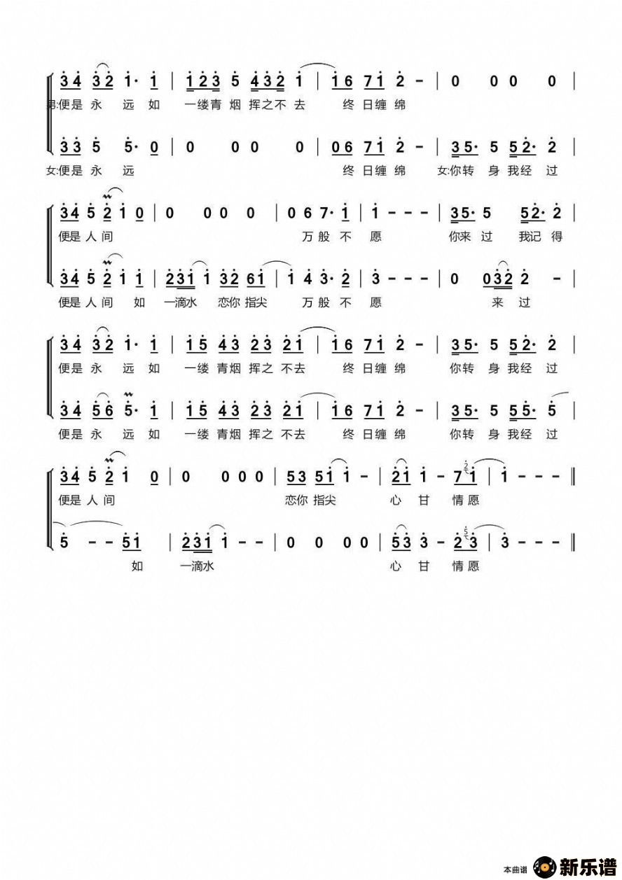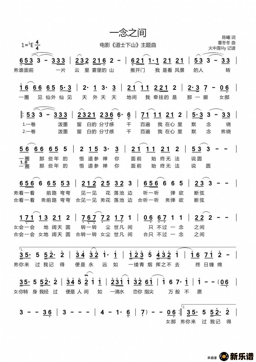 《一念之间(电影《道士下山》主题曲)》最新曲谱 张杰/莫文蔚
